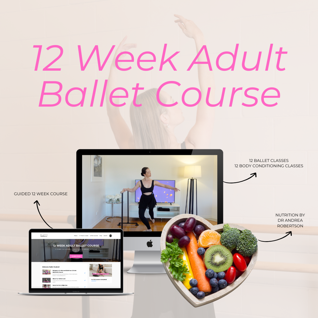 The 12 Week Adult Ballet Course is your ultimate guide to mastering ballet as an adult, whether you're a beginner or returning to the barre. With structured lessons focusing on technique, flexibility, and strength, this course builds confidence and grace in a supportive, judgment-free environment. Designed to fit into your lifestyle, it combines expert instruction with mindset tips, helping you embrace the joy of ballet while improving your body and mind.